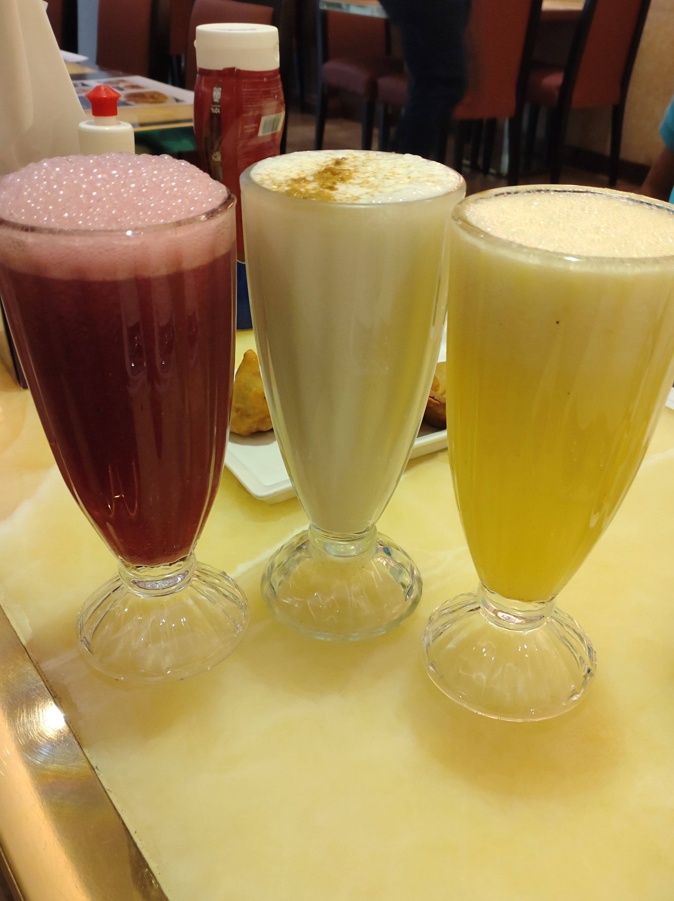 Their fresh juices – we tried pomegranate and pineapple, and salted lassi were good. Fresh, unsweetened and not watered down.