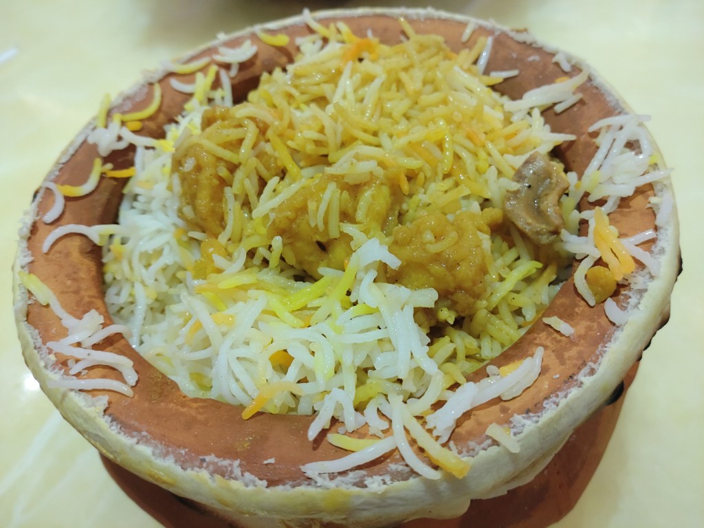 For our mains we went with a mix of biryani and naan. We had some Plain Naan (AED 6) on the day, which was served warm and crisp. The fact that it was quite thin and easy to break made it enjoyable to eat with the curry that we ordered. (We did try their garlic and butter naan on a subsequent day and these, too were pretty good.)