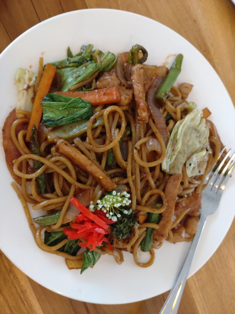 One of the main dishes we had was their Pork Yakisoba (other option – chicken) (LKR 1,820). This had a fair bit of veggies – beans, carrots, cabbage, onion, bok choy – and pork strips, and came garnished with a bit of pickled radish and a scallion flower. The noodle was nice and the dish had a pleasant flavour overall. A little extra seasoning might have highlighted the pork more, but this didn’t get in the way of enjoying the dish.