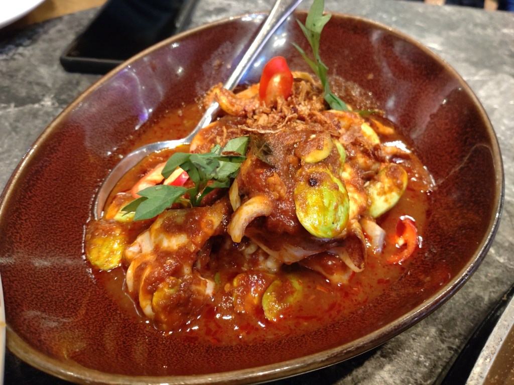 Sotong Sambal Petai (a chef’s recommendation) – squid with edamame in a sambal chilli paste (MYR 68.00) was one of the dishes we ordered for the main course. The squid seemed to be a touch undercooked and, contrary to the menu description, we didn’t get much sweetness in the sambal curry. It was generally okay, but we were expecting something a bit more enthralling.
