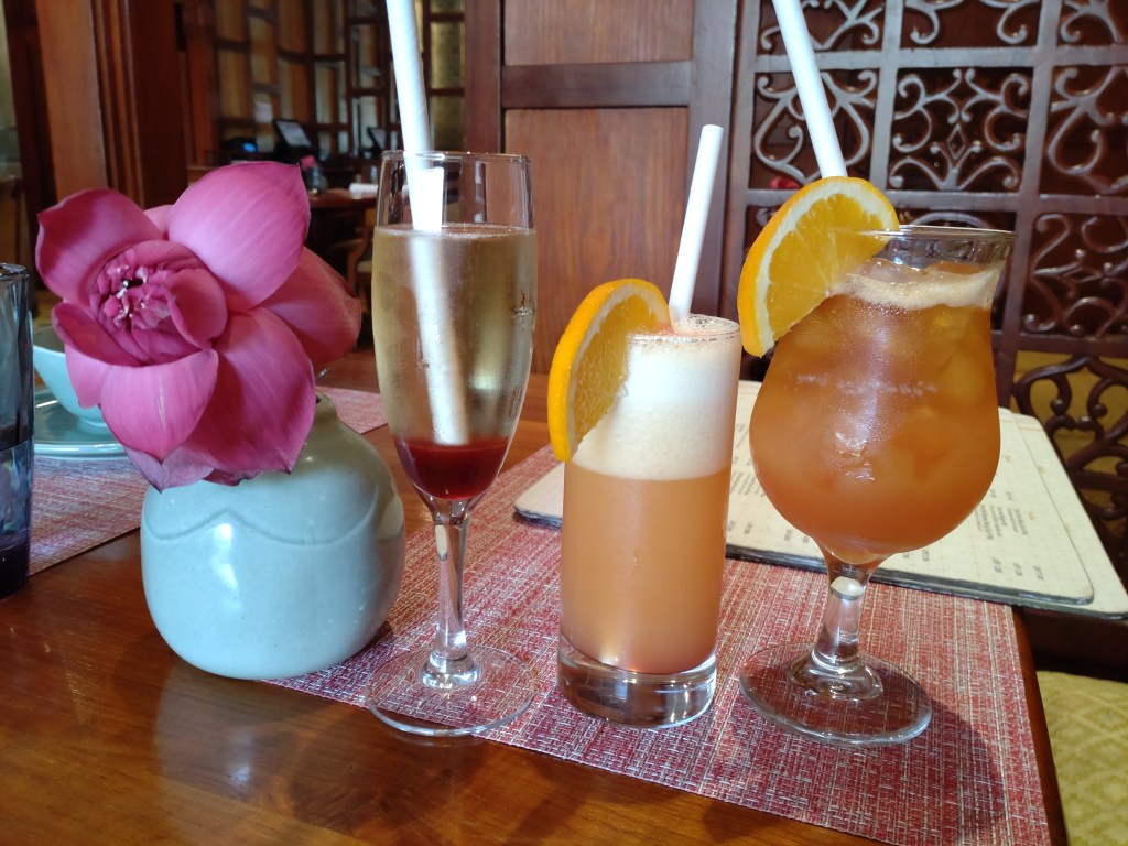 It was a quiet afternoon at Royal Thai and we started off with a few thirst quenchers that pepped us up for the meal ahead. My choice was Little Bit of Everything – orange, mango, pineapple juice and lychee syrup (LKR 900). This was a truly refreshing mocktail with a wonderful tropical feel to it. The little lychee pieces that you get every now and then as you sip along are like little pops of delight that make the drink all the more enjoyable. The other two beverages in the image below are Rossini – strawberry purée topped with sparkling wine (LKR 1,500), a fun and bubbly cocktail laced with the fruity flavour of strawberry, and Hurricane – dark and white rum, passion fruit purée, orange juice and grenadine (LKR 1,800), which was also enjoyably fruity, I am told.