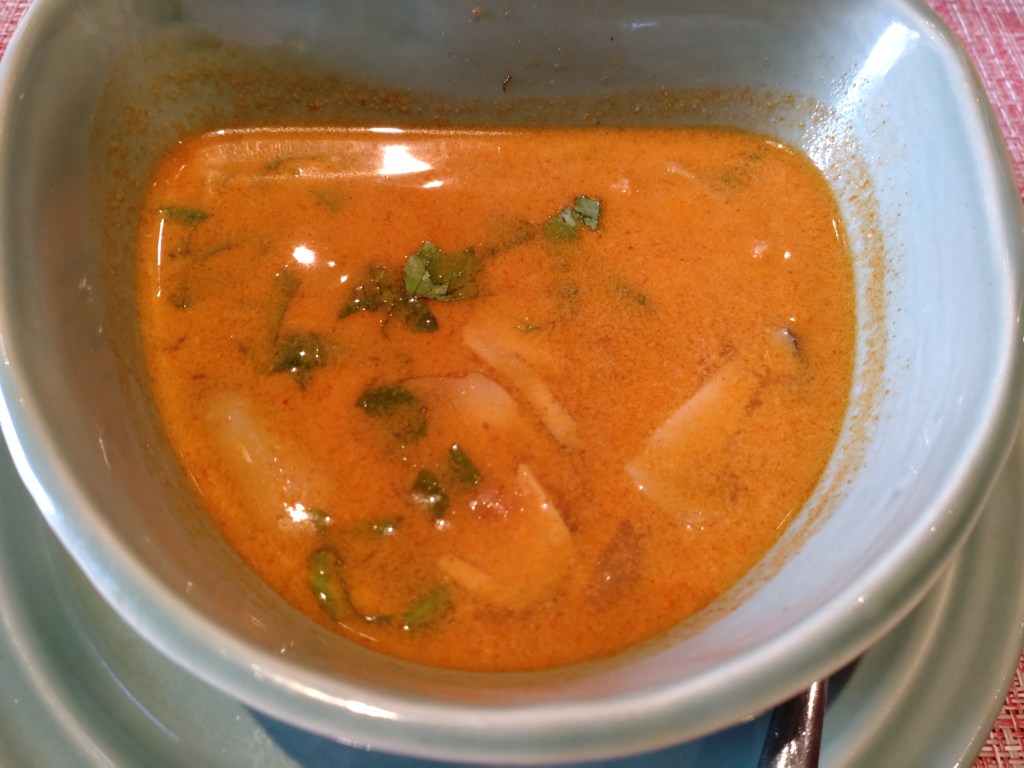 We then ordered some Tom Yum Goong – spicy prawn soup with Thai herbs (LKR 2,600). The soup was spicier than usual, but had its characteristic kaffir leaf and galangal-infused taste that made the broth a great appetiser. It came with three large prawns and plenty of mushroom halves.
