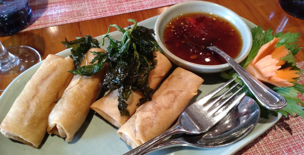 The Por Pia Pak – vegetable spring rolls (LKR 1,400) were crisp and had a tasty filling, but were a bit oily – as was the fried kankun garnish. However, the sweet chilli sauce complemented the spring rolls well and made the starter an enjoyable one nonetheless.