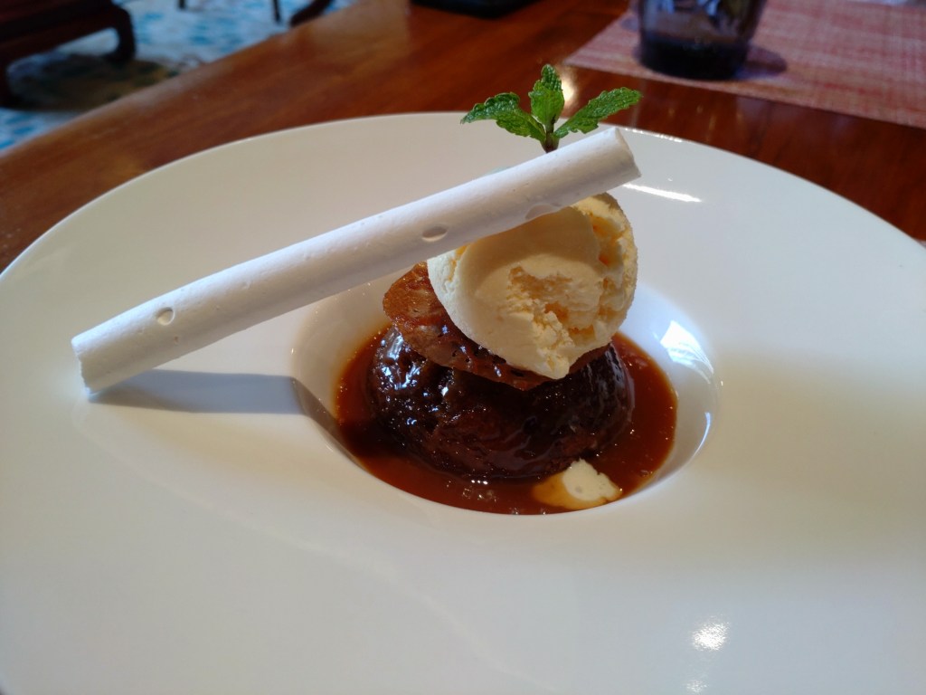 Cinnamon Lakeside’s presentation of their desserts is usually a stunning affair. And it was no different with the two desserts that we tried out. The first was Date Pudding (LKR 1,000). Apart from the fact that the pudding itself tasted great, the date syrup that had been poured on it was a perfect match for the pudding, being not too sweet and not too thick. The perfectly done meringue ‘cigar’ (if I may call it that) was a head-turner, and the beautiful lotus root-like tuile that sat between the pudding and ice cream was a great addition both visually and texturally. The dessert came with a scoop of vanilla ice cream and a mint leaf garnish.