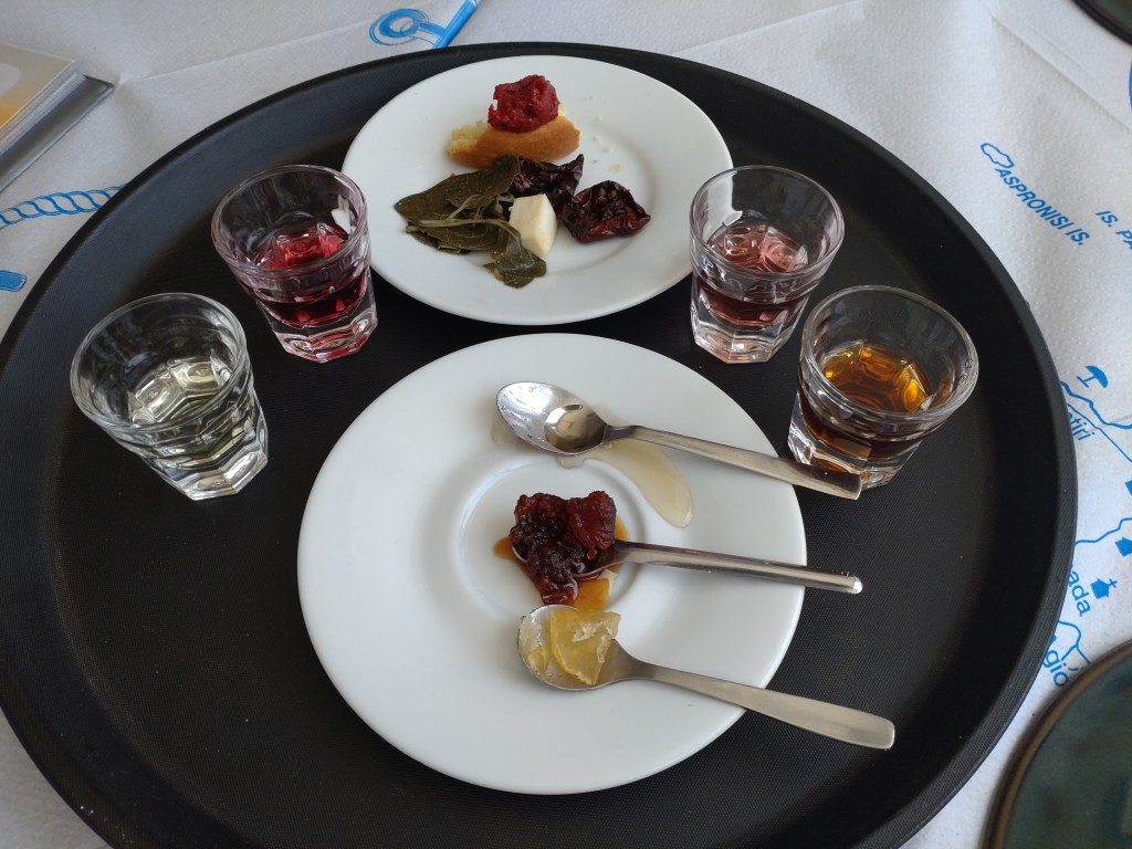 We were rather glad to be introduced to The Good Heart by our local guide, Nikos, in Santorini. It’s a family-run restaurant that serves homemade food, largely prepared with (mostly their own) locally sourced produce. Needless to say, everything is fresh and tastes great. They also run a small shop and tavern at the side at which they sell a variety of their very own and other locally made food products and wines.