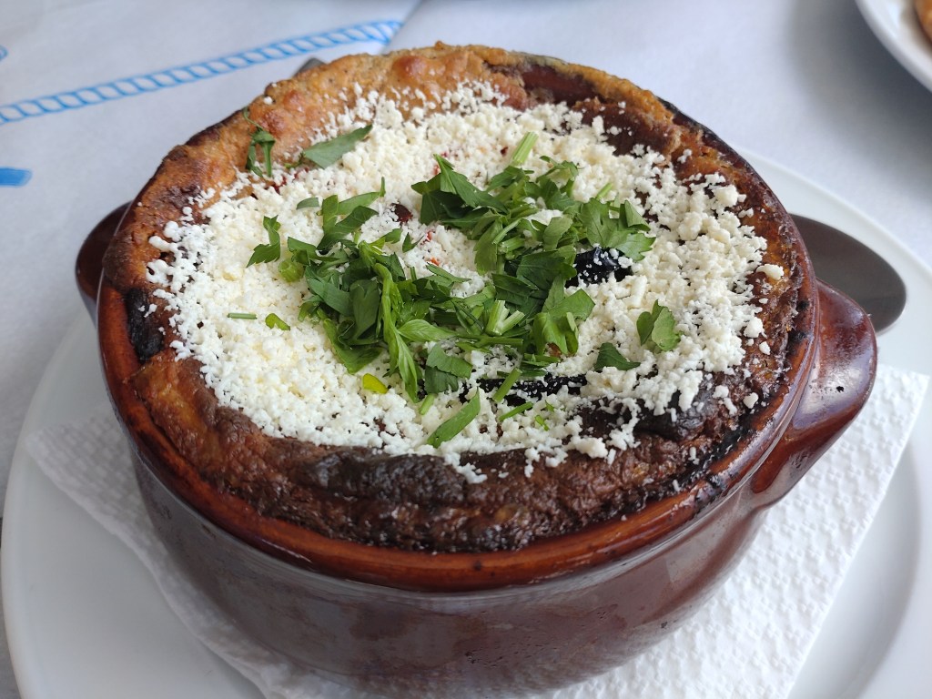 We also tried The Good Heart’s moussaka, a traditional egg-plant based casserole, baked together with a bit of potato, tomato and – in this case – shrimp. This is covered with a béchamel sauce that also gets baked, and is often topped with a thick sprinkle of feta. More commonly, minced meats such as beef or lamb are used instead of seafood. However, this combination that we tried was delicious. Proper comfort food.