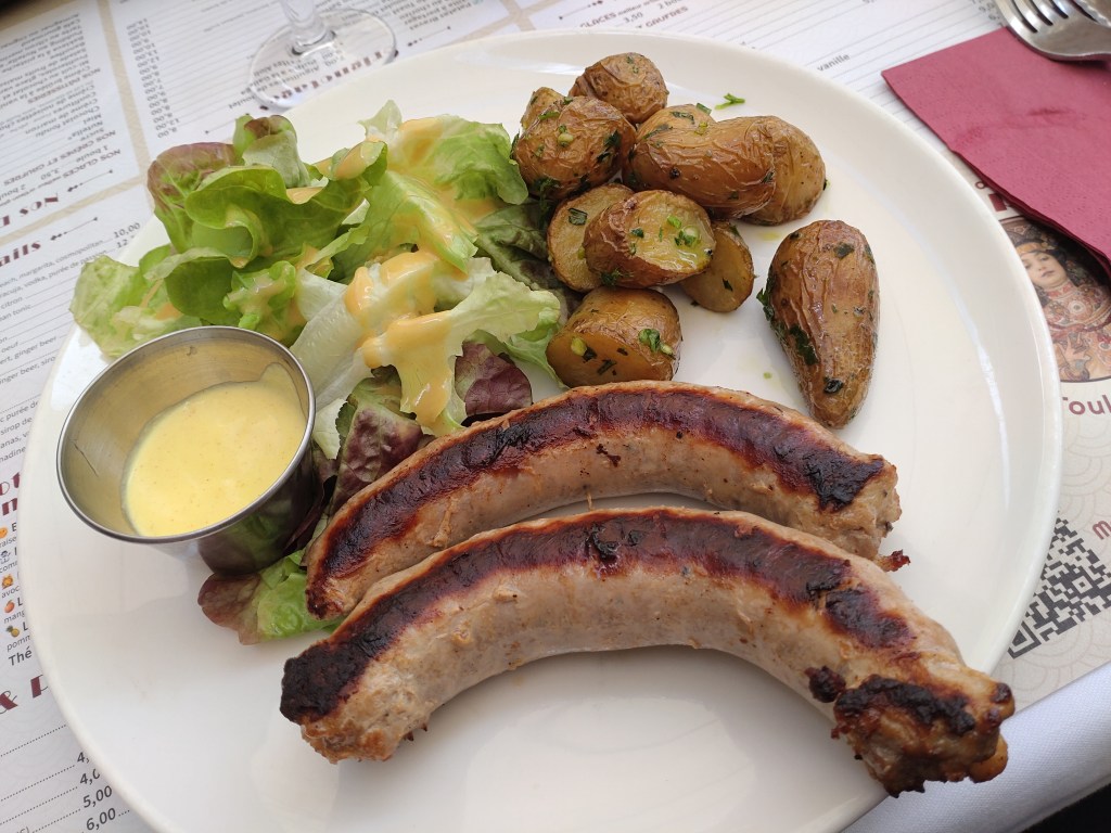 Apparently one must not leave Toulouse without trying their speciality sausage. Saucisse de Toulouse is a fresh pork sausage that is made in Toulouse itself. We tried some at Grand Café Le Florida, located at the Capitole Square, and found it to be quite tasty indeed. The soft natural casing came apart without much fuss, revealing the well-seasoned, grilled meat that it encased, and one could tell that these had, in fact, been produced locally. The mustard sauce that accompanied the dish complemented it perfectly, together with the fresh salad leaves and herby roasted jacket potatoes. A very satisfying lunch!