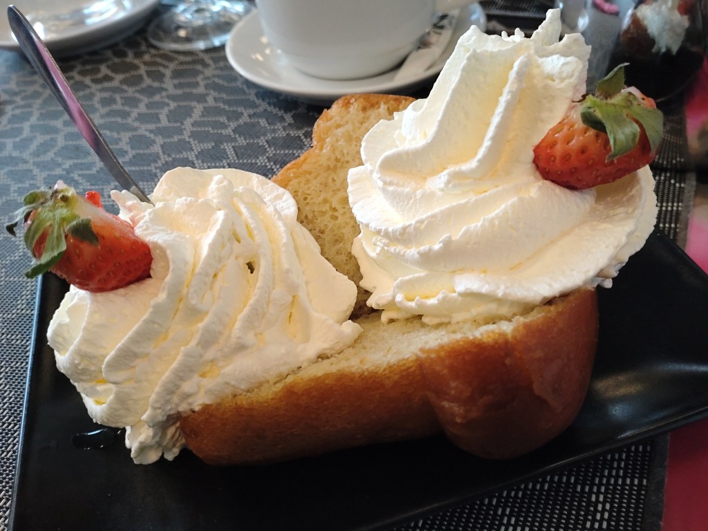 It wasn’t until we were in Lourdes that we got the opportunity to try out France’s popular baba au rhum (or rum baba) at Little Flower resto-café. It is essentially a yeast cake (usually portion-sized) that is soaked in a rum-based syrup and topped with whipped cream. And it pretty much tastes very much the same as its description. A fun and enjoyable dessert if you’re looking for something light that still gives you a tickle.