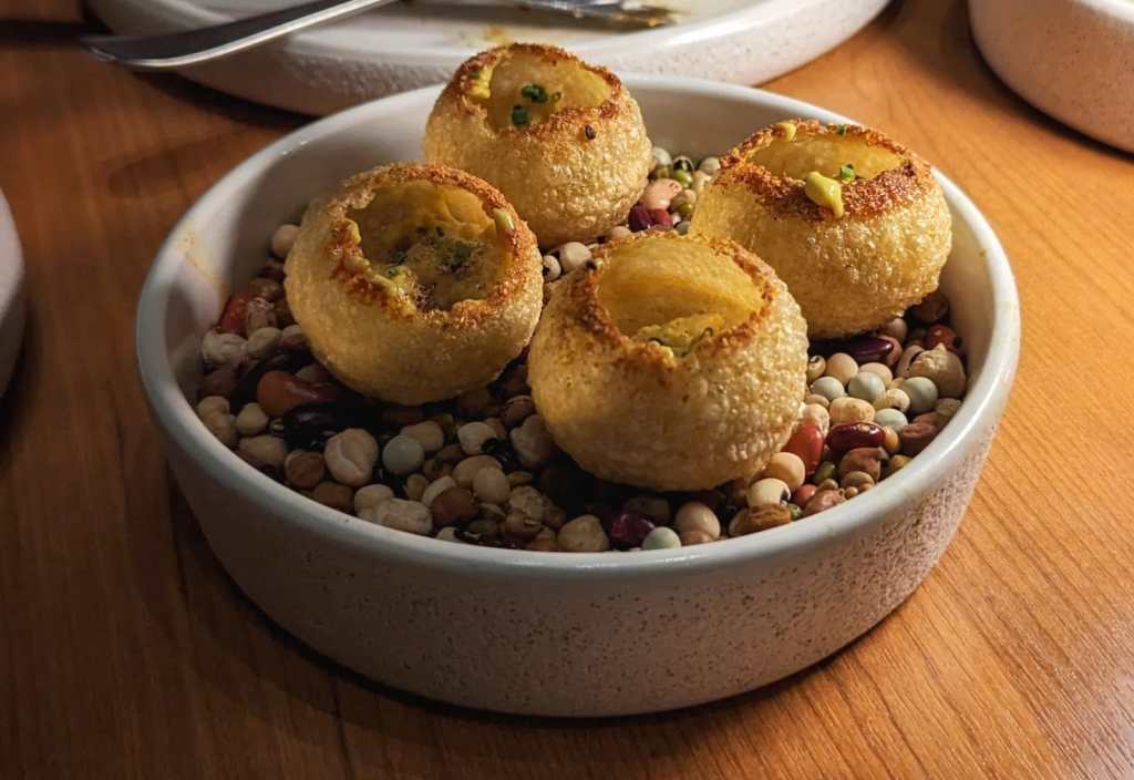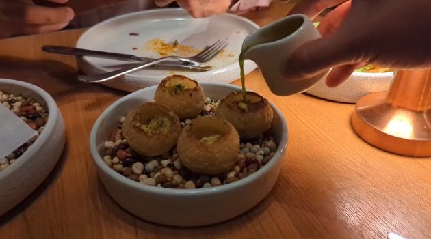 Next was the Lobster Pani Puri (AED 120), a scaled-up version of the much-loved Indian street food that was finished at the table with its liquid element. The individual elements were not distinctly recognisable as you first broke into it in your mouth, but the more you munched on and let it bathe your palate, the more alive the flavours became. It was vibrant and joyful to devour.