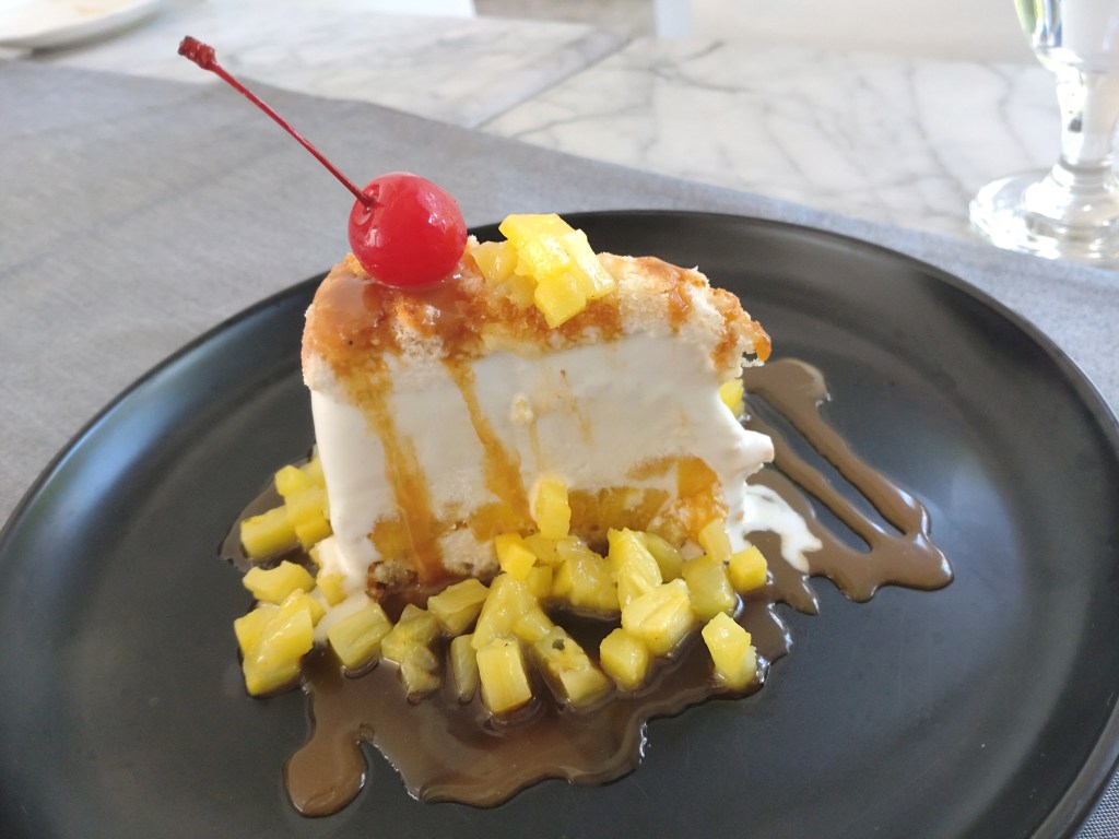 One of Maniumpathy’s desserts that we tried was the Piña Colada Ice Cream Cake (LKR 1,100), which was pretty good! The coconut-heavy ice cream block was sandwiched between two fine layers of sponge with a thick layer of candied pineapple pieces towards the bottom. Together with the cut pineapple that sat around the slice and the salted butterscotch sauce that had been poured onto it, it was a delectable blend of coconut and pineapple flavours.