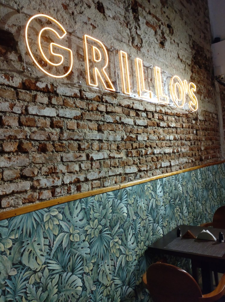 Grillo’s is run by Fern B&B in the heart of Colombo. The restaurant has a fun and welcoming interior with a bit of wall art, a mix of individual chairs and comfortable, rustic wooden benches at the tables, a brick wall on one side with a neon sign, and a mini jungle-like indoor garden in one corner. The place felt open and airy with its very high ceiling and the spaced-out arrangement of tables.