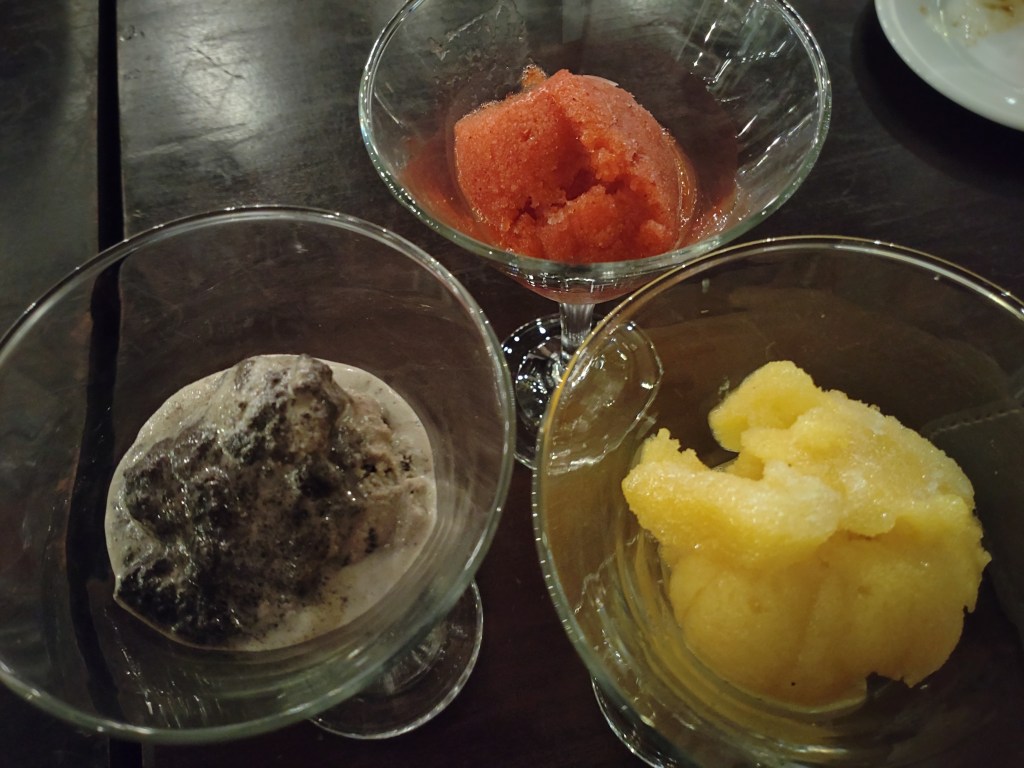 Finally, we tried a couple of their Homemade Sorbets (LKR 650 per scoop) – Mango, and Strawberry & Lime, and their Cookies & Cream Homemade Gelato (LKR 650 per scoop). Both of the sorbets were quite nice and refreshing, and I thought that the strawberry and lime sorbet was a good balance between sweetness and tartness. The gelato was good, too, with a bit of pulpy thickness from the cookies and a decent flavour of the cookies and cream combination.