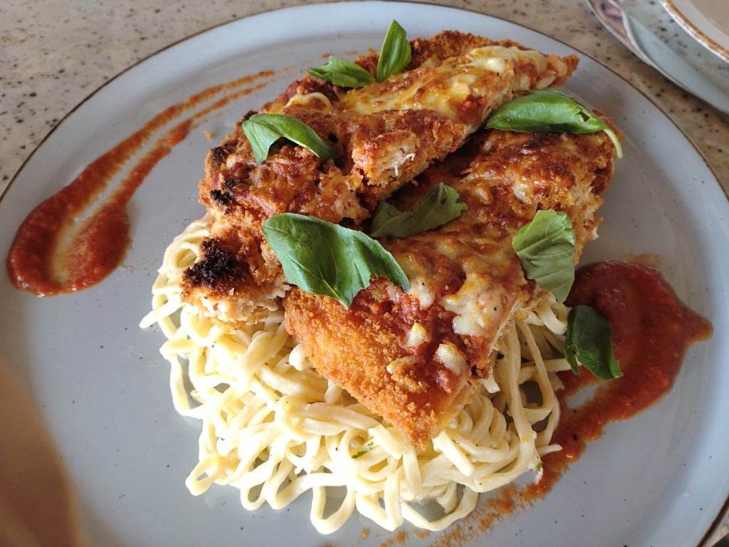 Cucina’s Chicken Parmigiana (LKR 2,900) – crumbed chicken fillet, house tomato sauce, mozzarella, parmesan and pesto, was a massive affair. It came in the form of two rather large chicken cutlets on a bed of (a generous portion of) home-made pasta. If the soup, salad and bruschetta might have seemed a bit up-end in terms of price, this was definitely right up there in terms of value for money! Such was the portion size. And the combination of the cheeses with the tomato sauce and basil made the well-seasoned chicken quite enjoyable. Moreover, the dish was visually enticing.