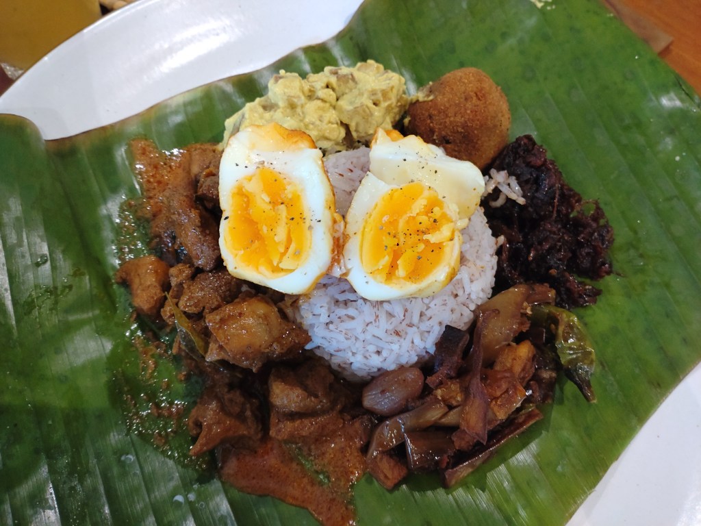The Signature Kemara Lamprais is available in both vegan (LKR 1,950) and non-vegan (LKR 2,250) options, with a choice of white rice, red rice or cauli-quinoa (cauliflower and quinoa). We went with non-vegan, and pictured below is the red rice option. While the meal is not your conventional lamprais, the tastes of all the constituents were pretty good. The chicken curry was indeed very Sri Lankan – one could definitely taste the spices and condiments. I thought the white ash plantain curry was really good – great taste and viscosity of the curry. The banana flower (kehelmuwa) cutlet was a fantastic idea and was tasty, too. The aubergine pahi (wambatu moju) and onion relish (seeni sambol) were nicely done, and the unconventional soft-boiled egg somehow worked well with the rest of the elements. As I said, different from what one would ideally refer to as lamprais, but a delicious plate of food nonetheless.
