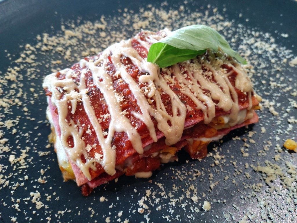 I absolutely loved the Creamy Seafood Lasagne (LKR 2,650) which was prepared with smoked vegan cheese. The menu description mentioned spinach lasagne sheets but, going by the colour, I believe they might have been beetroot lasagne sheets. Either way, it was absolutely delicious. The ingredients were perfectly balanced and well-complemented by the vegan cheese and tomato sauce that were on top. The lasagne sheets themselves were thin and had been cooked to moist perfection. The crunchy bits of shrimp that it contained added a bit of joy with every mouthful. A highly recommendable dish indeed.