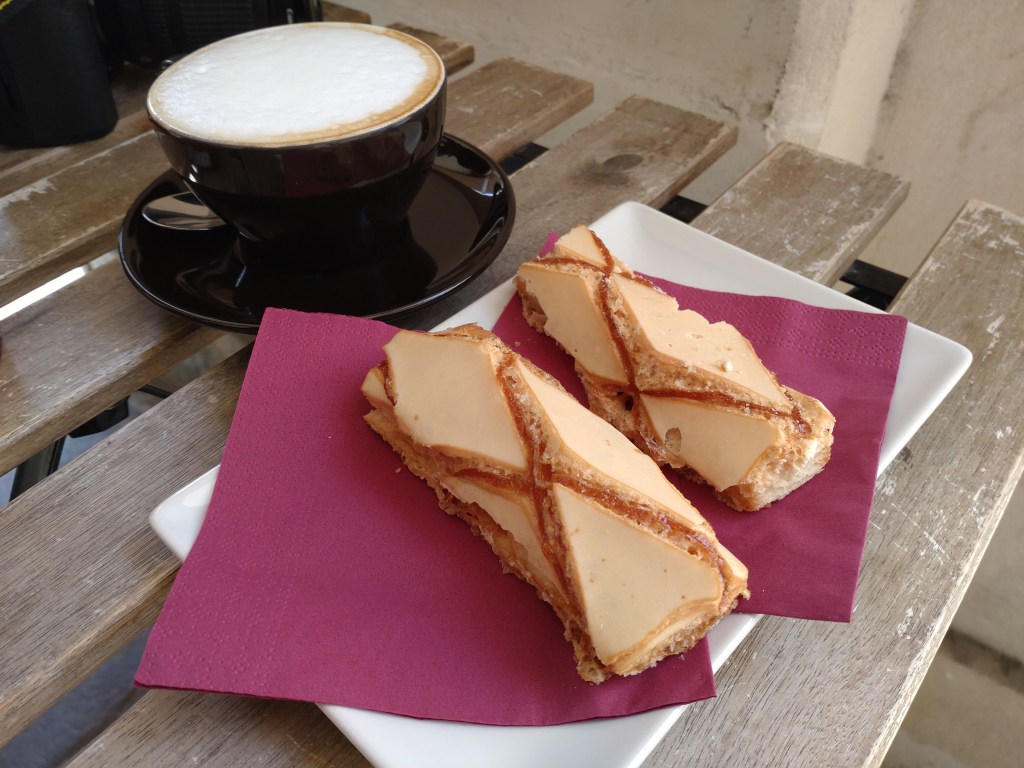 I believe it was almost exactly ten years ago, while we were visiting Assisi, that I learnt how great a friend a cannoli could be. Perhaps not for one’s blood glucose levels, but for one’s dopamine levels. With that memory in mind, I was keen to have a cannoli while we were visiting Padua. This time, we went with the mini version at Caffè Diemme which, for its small size, had an impressive display of sweet treats and other snacks to choose from. I have to admit here that I might have picked the mini version because I wanted to try the cute mini hazelnut tart (which, by the way, was SO good) as well. The cannoli was lovely, as expected, with its hard shell, inner chocolate lining, soft cream and a bit of pistachio. Little joys that create lasting memories!