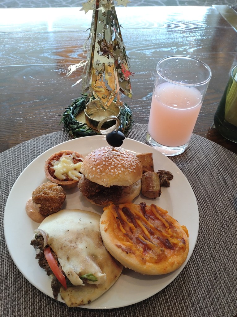It was quite evident that everything from the finger foods to the sandwiches, pastries, burgers and more had been carefully curated, with a lot of thought going into the flavours of each. The highlight, for me, from the savouries was the döner kebab (bottom left of the plate below). Everything about it was on point – from the pita to the marination and cook on the lamb, to the combination of excellent tahini and coriander which rendered a beautiful flavour to it. The roasted pumpkin pizza (bottom right) had an interesting flavour to it, too, that we enjoyed. We also liked the fried tuna ball (center left), which had a very unique taste and texture to it. You also see here a minced meat and mozzarella tart, chicken schnitzel burger and Viennese pork sausage with mustard sauce.