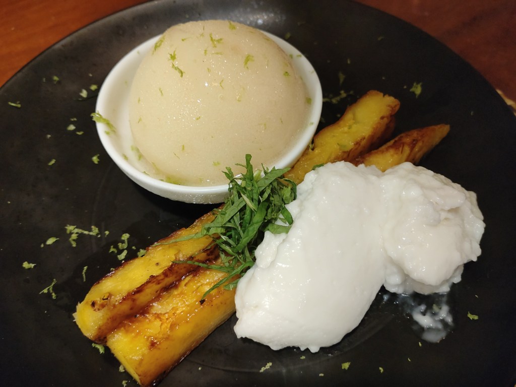Finally, we tried one of their desserts – Grilled Pineapple with Coconut Mousse & Ginger Beer Sorbet (LKR 1,200). The dish came to us with one of the key elements missing – the coconut mousse, and nothing mentioned about it. After much attempt to get the attention of the staff, and upon inquiry, we were told that the mousse was not available. Shortly after which we were asked to wait a bit and the unavailable mousse magically appeared alongside the other two elements. Either way, none of the elements wowed us – certainly not the grilled pineapple. The mousse was coconutty, yes, but also quite sweet, and (as you might notice in the image) could definitely be better in terms of texture. The ginger beer sorbet was refreshing at first bite, but also left a fair bit of overpowering sweetness on the palate after consumption. I probably ought to also mention here that the mint leaf slithers that had been used to garnish the dessert were far from fresh. There really was no need for it to be put on the dish.