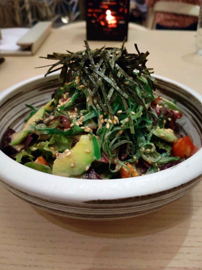 Yoroko’s Wakame Salad (LKR 4,000) was fantastic. It was a texturally and visually brilliant combination of red algae, green algae, nori, avocado, fresh lettuce, cherry tomato halves and sesame seeds. The menu description mentioned a sesame dressing as well as nori salt. I’m not sure what it was, but the dressing on the salad was something else. Had I been at home, I would definitely have licked the bowl clean.
