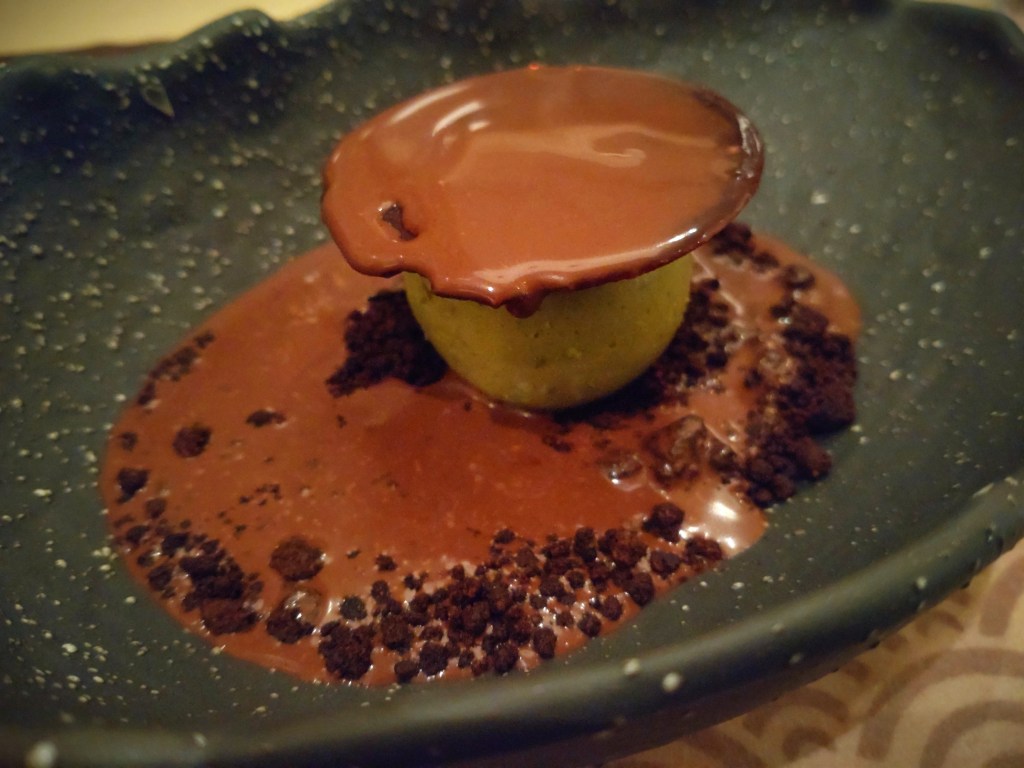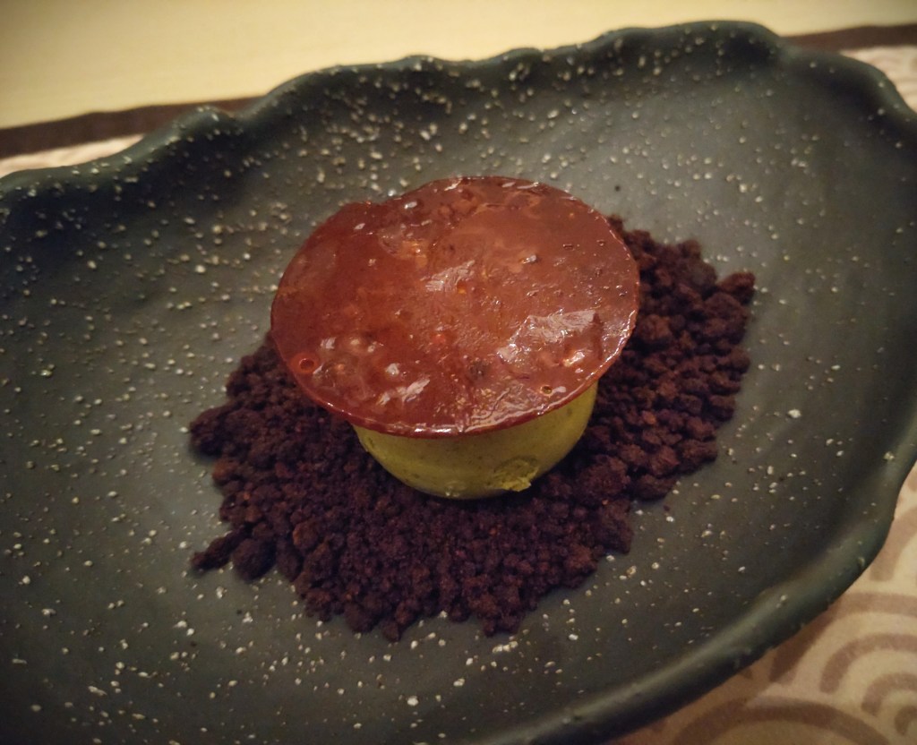Finally, we tried two of the three desserts that were on Yoroko’s menu. The first was their Matcha Frozen Mousse (LKR 2,100) which came on a bed of chocolate soil and had a chocolate almond streusel disc on top. The umeshu chocolate liquor came separately and was poured over the dessert at the table. I have to admit, I’m no matcha fan, but this mousse was great – lovely texture, and a subtle matcha flavour that did not overwhelm. While it might not be everyone’s cup of tea, I was quite happy about the fact that both the chocolate soil and the chocolate liquor were not sweet. In fact, they were a bit on the bitter side – which works well for me, given that I like dark chocolate. The chocolate almond disc gave the dessert an element of sweetness that sort of roped it all together.