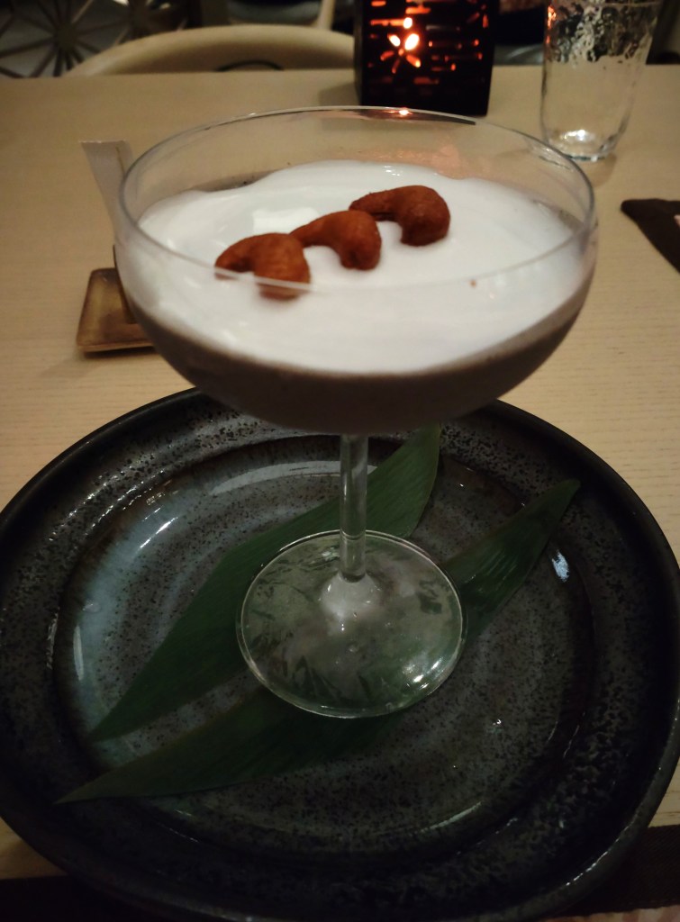 The second dessert we tried was their Black Sesame Namelaka (LKR 2,100), which is essentially a smooth, creamy, softly set ganache dessert. It was good, too. An interesting flavour, laced with sweetness, topped with coconut cream, and casually contrasted by the three miso-candied cashew nuts that sat on top.
