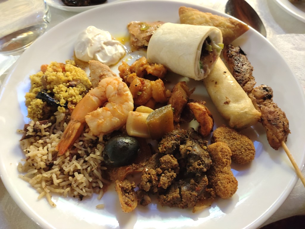 The main savoury section was, expectedly, meat-heavy, while also offering some seafood dishes. The range of mostly typical iftar foods included the likes of sambousek, kebab, cheese spring rolls, couscous, pilaf, Moroccan- and Mediterranean-style chicken, beef, lamb, fish and mixed seafood dishes, and chicken shawarma wraps among other things. Apart from the tahini sauce – which was more mayo than tahini – the overall presentation and taste were quite good. Enjoyable and, expectedly, something different from the conventional buffets that we otherwise indulge in.