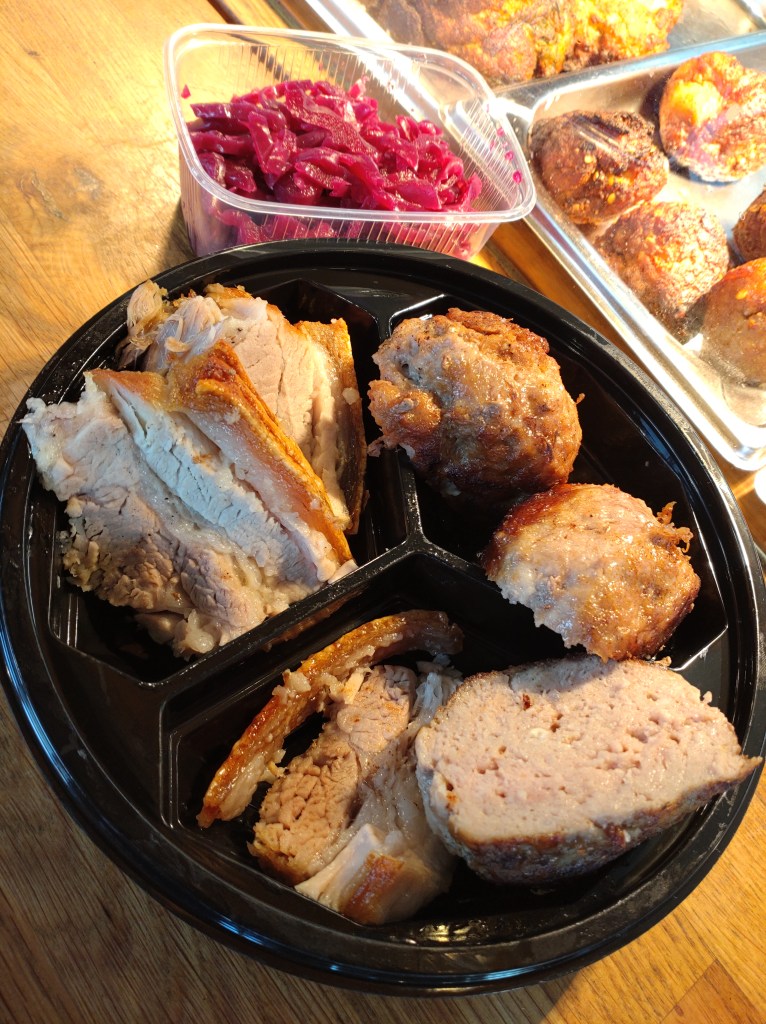 Next up was some frikadeller (meatballs) and flæskesteg (roast pork belly) with a beetroot relish. The pork belly had a nice crisp skin on it, and the meatballs were juicy and delicious. That beet relish was such a star, though, that it nearly outshone the mainstays.