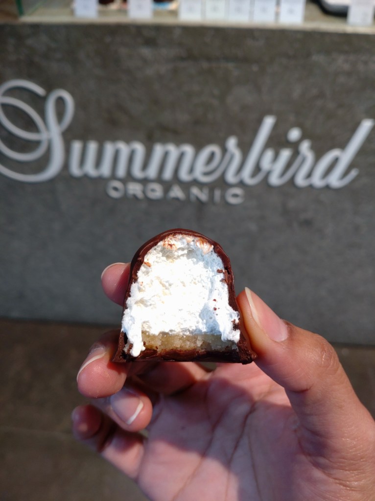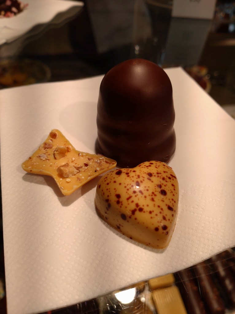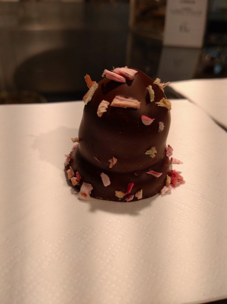 Our final stop was at Summerbird, a Danish organic gourmet chocolatier. Of course, we tried everybody’s favourite flødeboller, a delightful tea cake with a biscuit base, marshmallow filling and chocolate coating. It was lovely. They also do a rhubarb version of it (there was a hint of tartness in the filling of this one), as well as many other flavoured gourmet chocolates. In the image with the classic flødeboller are amber chocolates with a hazelnut topping and a passion fruit filling.