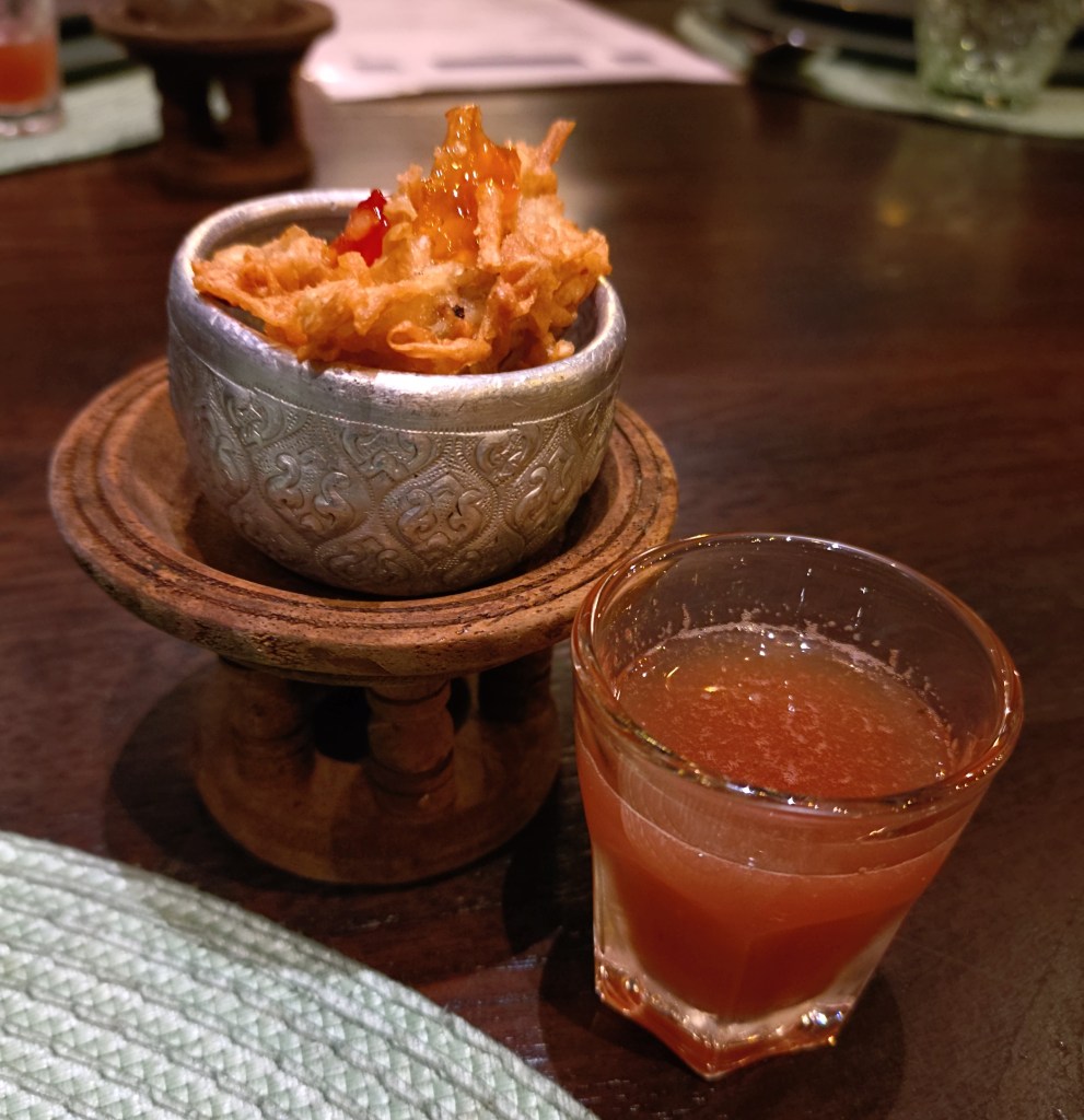 We were welcomed with a shot of their Mocktail of the Day – a concoction of watermelon, cucumber, and chilli – and a taro dumpling. Both were lovely, the wonton being warm and crisp on the outside with a soft core, and the mocktail being so refreshing that it was one among our beverage order for the night.