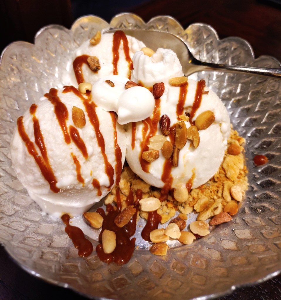 If you’re not big on dessert, the Coconut Ice Cream (LKR 1,300) can easily be shared between two, for it comes with three scoops of coconut ice cream. However, one cannot be chided for indulging in an entire portion by oneself, for the ice cream was truly delicious. Just the right sweetness, flavour, and texture. (For the record, I’m neither an ice cream person, nor a coconut person.) What made it even better was the caramel drizzle, crushed biscuit and roasted peanuts that garnished the ice cream – a perfect combination of tastes and textures that made it a charming dessert. There were also a few coconut-flavoured glutinous sweets (à la kuih lapis) sitting atop the scoops. All-in-all, an excellent finish to the meal.